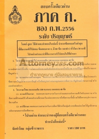 สอบครั้งเดียวผ่าน ภาค ก. ของสำนักงาน ก.พ. ระดับปริญญาตรี 2556