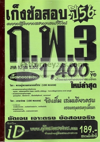 เก็งข้อสอบ ก.พ. 3 ภาค ก. วุฒิป.ตรี 1,400 ข้อ พร้อมเฉลยอย่างละเอียด เล่มเดียวครบ ปี 56