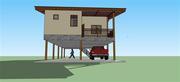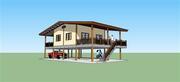 แบบบ้านเกษตรพอเพียง ยกพื้นสูง จนสามารถอยู่อาศัยชั้นล่าง หรือทำประโยชน์อย่างอื่น ๆได้เช่น จอดรถยนต์ พักผ่อน หรือเผื่อไว้สำหรับอนาคาตที่เจ้าของบ้านต้องการที่จะเพิ่มห้องนอนและห้องน้ำ ชั้นล่างได้
