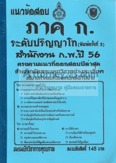 แนวข้อสอบ ภาค ก. สำนักงาน ก.พ. ระดับปริญญาโท (พิมพ์ครั้งที่ 3) ปี 56