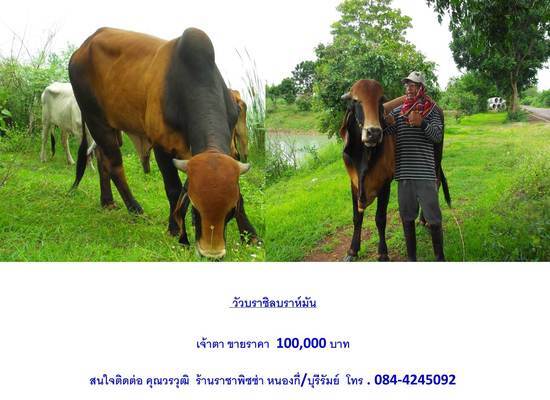 เจ้าตา วัวบราซิลบราห์มัน ขายราคา 100,000 บาท สนใจติดต่อ คุณวรวุฒิ ร้านราชาพิซซ่า ตลาดหนองกี่ จ.บุรีรัมย์ โทร. 084-4245092