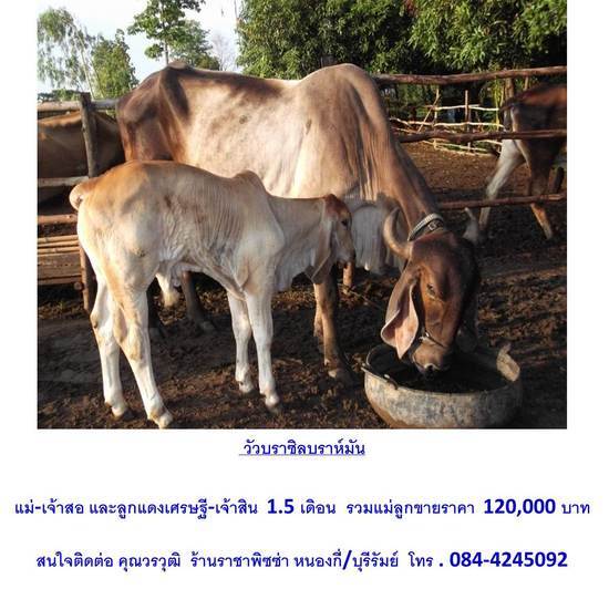 แม่-เจ้าสอ และลูกแดงเศรษฐี-เจ้าสิน อายุ 1.5 เดือน รวมแม่ลูก ขายราคา 120,000 บาท สนใจติดต่อคุณวรวุฒิ ร้านราชาพิซซ่า ตลาดหนองกี่ จ.บุรีรัมย์ 31210 โทร. 084-4245092