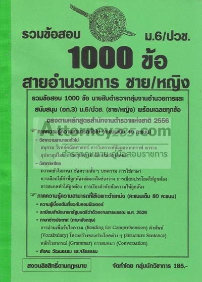 รวมข้อสอบ นายสิบตำรวจ สายอำนวยการ ชาย,หญิง วุฒิม.6 ปวช. (ข้อสอบ 1,000 ข้อพร้อมเฉลย) 2556