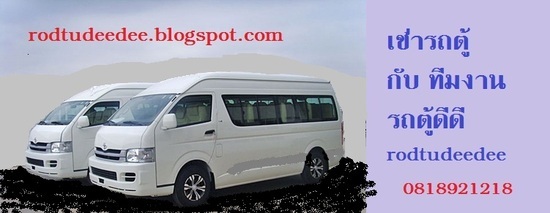 http://rodtudeedee.blogspot.com (รถตู้ดีดี ดอท บล็อกสปอต ดอทคอม) เช่ารถตู้กับ ทีมงาน รถตู้ดีดี บริการ ให้เช่ารถตู้ 081-892-1218 วีไอพี VIP 0815705470 ท่องเที่ยว รับส่ง ทั่วไทย ด้วยรถตู้ตกแต่งเป็นพิเศษVIP TV VCD พร้อมด้วยพนักงานขับรถที่มีประสบการณ์และคุณภาพ ภายในกว้างขวางนั่งสบายด้วยเบาะVIPand LUXULY 9-10 ที่นั่งราคาเพียง1,500 บาทและ เบาะ11-14ที่นั่ง ราคา1,800-2,000 พร้อมยังติดตั้งจอ TVขนาดใหญ่ เพื่อชมภาพยนต์ เหมาะสำหรับให้เช่ารถตู้แบบท่องเที่ยว หรือ แบบงานสัมมนาหรือ