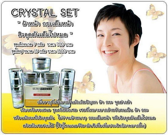Crystal Set สำหรับผู้ที่มีปัญหาสิวอุดตัน และฝ้า กระหนาๆ รักษาไม่หายซะที สำหรับคนฝ้าหนาๆ ฝ้ามาเป็นชาติไม่หายซะที กำจัดสิวอุดตัน ฝ้า กระ จุดด่างดำ รับรองเห็นผลชัดเจน ภายใน 2 อาทิตย์ ช่วยทำให้หน้ากระจ่างใส ดูแวววาว และผิวเรียบเนียน ฝ้ากระจางลงอย่างเห็นได้ชัดเจน Crytal Set : เหมาะสำหรับผิวธรรมดา-ผิวมัน และมีปัญหาฝ้า กระ จุดด่างดำ สีผิวไม่สม่ำเสมอ หรืออายุขึ้นเลข 3