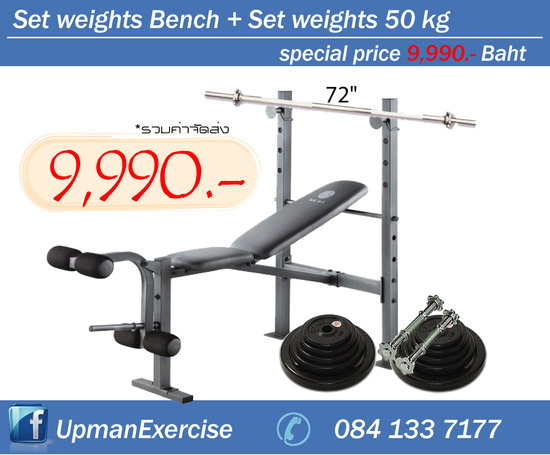 ชุดเซ็ทม้านอนยกน้ำหนักพร้อมดัมเบลล์,บาร์เบลและแผ่นน้ำหนักรวม 5o Kg ราคารวมจัดส่งทั่วประเทศ เพียง 9,990.- บาท