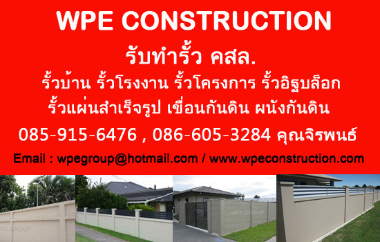 รับทำรั้ว คสล รั้วบ้าน รั้วโรงงาน รั้วอิฐบล็อก รั้วแผ่นสำเร็จรูป ผนังกันดิน เขื่อนกันดิน ติดต่อ 086-605-3284 Email : [email protected] www.wpeconstruction.com