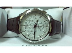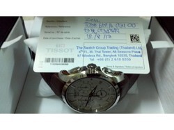 ขายนาฬิกา Tissot T-Trend Couturier Brown Dial Chronograph Mens Watch แท้ ๆ พร้อมใบรับประกัน สภาพดี 99% ระบบควอทส์ ตัวเรือนสแตนเลสแท้ หน้าปัดสีขาว ขนาดตัวเรือน 41 mm. สายหนังวัวเเท้สีน้ำตาลแบบบัคเคิ้ล กันน้ำลึก 100 m กระจกแซฟไฟร์กันรอย จาก swiss made