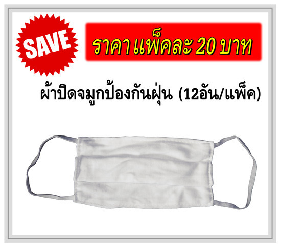 ผ้าปิดจมูกป้องกันฝุ่นละออง (12อัน/แพ็ค)