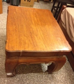 2. ขายโต๊ะไม้มะค่าขนาดเล็กมือสอง ไม้แผ่นเดียว 63x82 ซ.ม. ขนาดกะทัดรัด เหมาะสำหรับเป็นโต๊ะรับแขกย่อมๆ ราคา 8,500 บาท (ไม่รวมค่าขนส่ง)