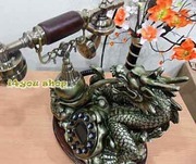 เชิญพบกับโทรศัพท์บ้านสไตล์วินเทจรูปทรงมังกรสัตว์แห่งแดนสวรรค์ ขนาด 280 mm. x 220 mm. x 250 mm. ใช้เรซิ่นเป็นวัสดุในการผลิตทั้งชิ้นงาน โดยผู้ออกแบบตั้งใจออกแบบให้เป็นของใช้และของแต่งบ้านเพื่อเป็นสง่าราศีและ แสดงถึงความมีพลังอำนาจและบารมีอันเป็นมงคลนำพาซิ่งความเจริญรุ่งเรืองทั้ง ความอุดมสมบูรณ์ และยศฐาบรรดาศักดิ์ โทรศัพท์โบราณเรือนนี้จึงมักถูกเลือกเป็นของขวัญที่เป็นของแต่งบ้านที่มัก มอบไปให้ผู้หลักผู้ใหญ่หรือเพื่อนที่คุณรักเพื่อเป็นความหมายดีๆ และสามารถใช้งานได้ในชีวิตประจำวันอันมีประโยชน์ ตำแหน่งการวางโทรศัพท์โบราณทรง มังกรให้วางในทิศตะวันออกเฉียงใต้ของอาคารร่วมกับภาชนะบรรจุน้ำจะช่วยให้มี โชคทางธุรกิจ การค้าจะไปสู่ความมั่งคั่งร่ำรวย สำหรับบริษัทและห้างร้าน ให้วางไว้ตรงทางเข้า ตรงประชาสัมพันธ์ต้อนรับลูกค้า โดยวางไว้ด้านขวามือเมื่อคุณเดินเข้ามา เป็นทั้งของขวัญและของแต่งบ้านที่เป็นสง่าและใช้ประโยชน์ได้ มีทั้งความสง่างามและเป็นมงคล เชิญชมสินค้าเพิ่มเติมได้ที่ http://i4you.ibuy.co.th/shop