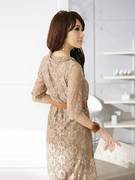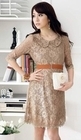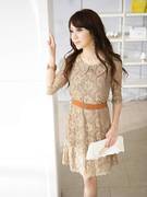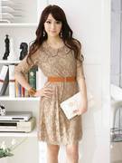พร้อมส่ง แฟชั่นเกาหลี เดรสผ้าลูกไม้ สีแอพริคอท ไซส์ 3XL พร้อมเข็มขัด (อก 44)