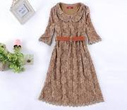 **พร้อมส่ง** แฟชั่นเกาหลี เดรสผ้าลูกไม้ สีแอพริคอท ไซส์ 3XL พร้อมเข็มขัด (อก 44)