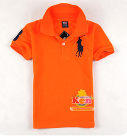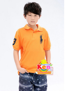 เสื้อเด็กคอปกแขนสั้นสีส้ม อกด้านซ้ายปักโลโก้โปโลสีกรมท่าโดดเด่นเท่ห์งานสวยค่ะ