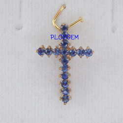 จี้พลอยไพลินจันทบุรี จี้รูปกางเขน ตัวเรือนทองคำแท้ มีใบประกันจากทางร้าน