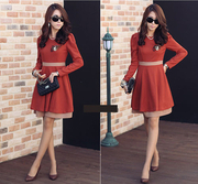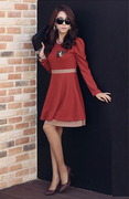 **พร้อมส่ง** แฟชั่นเกาหลี เดรสแขนยาว สวยหรู สีส้ม ไซส์ 2XL อก 40