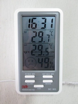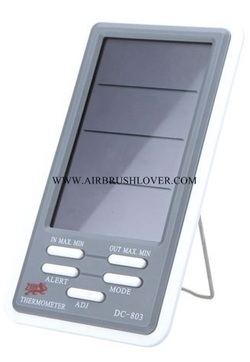 ดิจิตอล โทโมมิเตอร์วัดอุณหภูมิรุ่นใหม่ล่าสุด ใช้วัดอุณหภูมิได้ทั้งภายในบ้านและอุณหภูมินอกบ้านในเครื่องเดียวกัน สามารถอ่านค่าความความชื้นสัมพัทธ์ในอากาศได้ ตั้งค่าให้เตือนเมื่ออุณหภูมิขึ้นสูงหรือต่ำตามที่ต้องการได้ มีนาฬิกา และปฎิบิน และสามารถตั้งปลุกได้