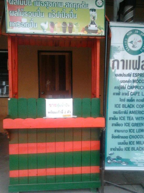 ขายซุ้มน้ำปั่นผลไม้หรือซุ้มกาแฟ ราคาถูก พร้อมเก้าอี้ยาว 2 ตัว สนใจติดต่อ