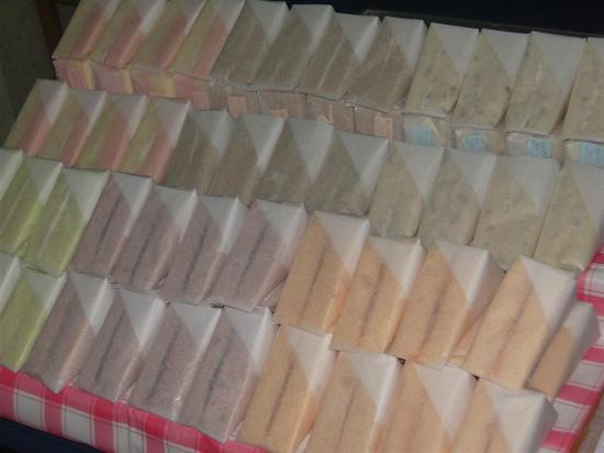 เค้กชิฟฟ่อน มีมากกว่า 14 รส เช่น มะพร้าว ใบเตย กาแฟ ช็อกโกแลต คุกกี้&ครีม ช็อกโกแลต-ชิพ ลูกเกด ส้ม สตรอเบอรี่ บลูเบอรี่ โยเกิร์ตสตรอเบอรี่ ทูโทน (ชอก+วนิลา) ฝอยทอง รสเผือก และมินิเค้กใส่กล่องพลาสติกปิดฝา 1 ชิ้นต่อกล่อง ไม่ต้องนำเค้กมาใส่กล่องกระดาษเหมือนตามตลาด ลูกค้าเลือกหน้าเค้กแล้ว หยิบใส่ถุงได้เลย มีรสกาแฟ รสชอกโกแลต รสใบเตย รสสตรอเบอรี่ รสส้ม รสบลูเบอรี่และรสวนิลา ชอก-ชิพ คุกกี้ครีม มีหน้าเค้กมากกว่า 50 หน้า