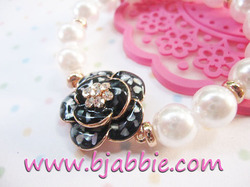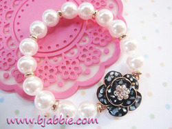 พร้อมส่งสร้อยข้อมือแฟชั่นมุกสีขาวแต่งดอกไม้สีน้ำเงินเข้มลายเปลือกหอยเกสรประดับเพชร (เส้นผ่าศูนย์กลาง 2.5 ซม.) แต่งอะไหล่สีทอง ร้อยเอ็นยืดขนาดฟรีไซส์ สวยหรูค่ะ