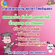 http://goo.gl/YpqxlO ทีมงานคุณภาพ การันตี ผลงาน 7 ปี สอนทั้งหลักสูตร ไทย อินเตอร์ สองภาษา Chula Bright รับสอนพิเศษตามบ้าน ตัวต่อตัว นัดนอกสถานที่ นัดวัน เวลา สถานที่ได้ สอนทุกวิชา ทุกหลักสูตร ติวเตอร์คุณภาพ สอนพิเศษตัวต่อตัว ติดเดี่ยว กลุ่ม สอนตั้งแต่ อนุบาล ประถม ม.ต้น ม.ปลาย มหาวิทยาลัย ปริญญาโท สอบแข่งขัน ชิงทุน เรียนต่อ สอบต่อนอก เราเป็นที่ปรึกษาให้คุณได้ -------------------------------------------------------------------------------------------------------