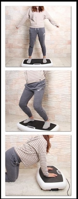 วิธีการออกกำลังกายรูปแบบใหม่ที่ง่ายและสะดวก ใช้การสั่นกระตุ้นการทำงานของกล้ามเนื้อ สลายไขมัน และกระชับสัดส่วน สะโพก ต้นขา น่อง เอว และช่วยผ่อนคลายกล้ามเนื้อกระตุ้นการไหลเวียนของโลหิตเหมาะสำหรับทุกเพศทุก วัยเหมาะสำหรับผู้ที่ไม่มีเวลาไปฟิตเนส