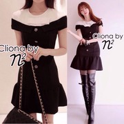 มินิเดรสคอกลม ดีไซต์เก๋ๆด้วยการตัดต่อผ้าช่วงไหล่คนละสี แต่งโบว์หน้าอกตามด้วยกระดุมทองไล่ลงมา เพิ่มความเก๋อีกนิดด้วยการแต่งระบายชายกระโปรงสวยๆค่ะ Cutting /Pattern สวยเป๊ะเหมือนแบบเลยจร้า งาน Premium Quality ป้าย Cliona ค่ะ
