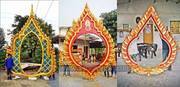 เเกะโฟมลายไทยเป็นซุ้มในงานราชพิธีต่างๆ เช่นวันพ่อวันเเม่ หรืองานเลี้ยงงานเเต่ง รับจัดทำซุ้มเฉลิมพระเกียรติ ซุ้มค่อมถนน ซุ้มประตูเมือง รับผลิตงานไฟ