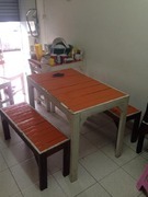 โต๊ะยาวสีส้ม พร้อมเก้าอี้ สี่ตัว 1500 บาท