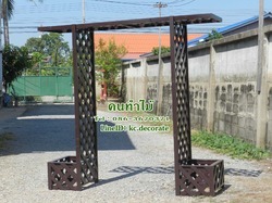 ซุ้มระแนงไม้เลื้อย พร้อมที่วางกรถางต้นไม้ สำหรับแขวนกล้วยไม้ ไม้ดอกไม้ประดับตกแต่งสวน บ้าน อาคาร ปรับระดับความแคบ ความกว้างของซุ้มได้ สั่งผลิตได้ตามขนาดที่ต้องการ เยี่ยมชมสินค้าเพิ่มเติมได้ที่ facebook/kontammai chayatorn หรือ Line id : kc.decorate