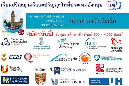 ขอแนะนำสถานศึกษาระดับปริญญาตรี-โท ณ ประเทศอังกฤษ