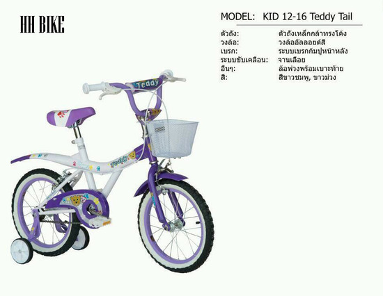 จักรยานเด็ก 12 หรือ 16นิ้ว Teddy Tail