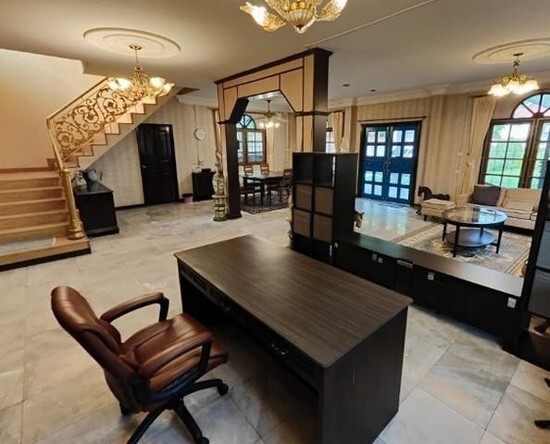 -เตียงนอน โต๊ะทานข้าว โซฟา เครื่องปรับอากาศ ห้องครัวกว้างขวาง ตู้เย็นใบใหญ่ ห้องซักผ้า/อเนกประสงค์เชื่อมต่อกับครัว เรือนแยกนอกตัวบ้านหลักใช้เป็นห้องแม่บ้านและห้องเก็บของได้ (ห้องน้ำนอกตัวบ้านหลักอีก 1 ห้องสำหรับแม่บ้าน คนขับรถ ฯลฯ)