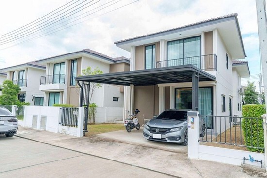 - ต่อเติมหลังคาโรงรถ สามารถจอดรถได้ 2 คัน