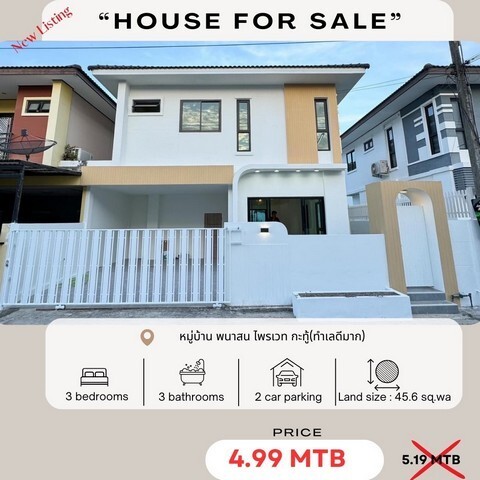For Sale : Kathu, 2-story house, newly renovated, 3 bedrooms 3 bathrooms