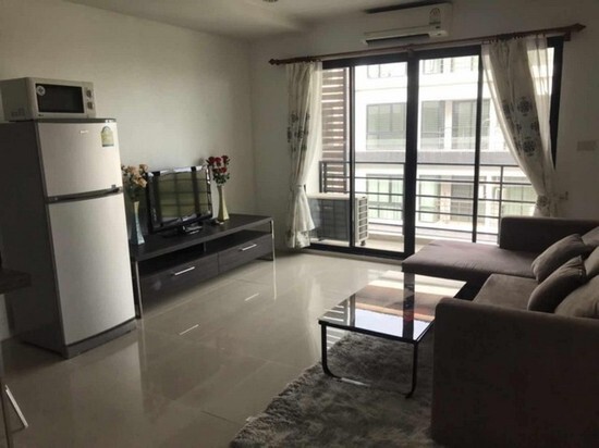 -ตกแต่งภายในมี ตู้เสื้อผ้า ตู้เย็นไมโครเวฟ โทรทัศน์ ชั้นวางทีวี ที่นอนเตียง โต๊ะและโซฟา