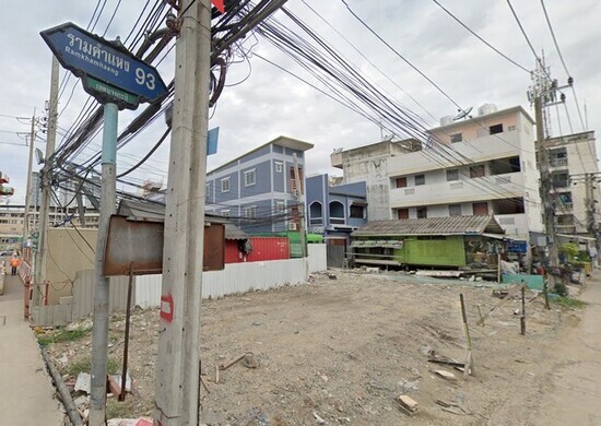 ขายที่ดินเปล่า ถนนรามคำแหง93 ใกล้ถนนใหญ่ ใกล้รถไฟฟ้าสายสีเหลือง แหล่งชุมชน คมนาคมสะดวก