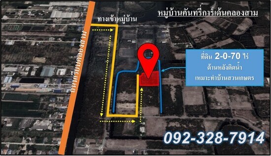 ขายที่ดินเปล่าทำบ้านสวนเกษตร ใกล้กรุงเทพ ม.คันทรี่การ์เด้น คลองสาม ปทุมธานี 2-2-70 ไร่
