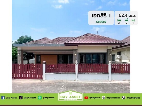 ขายบ้านเดี่ยวชั้นเดียว หมู่บ้าน เอกสิริ 1 : Baan Aeksiri 1 ระยอง ทำเลดี อยู่ในย่านชุมชน เดินทางสะดวก เนื้อที่ 62.4 ตร.ว. ขายเพียง 2,050,000 ล้านบาท
