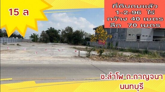 ขาย ที่ดิน ถมแล้ว 1 ไร่ 2 งาน 96 ตร.วา สี่เหลี่ยมผืนผ้า ติดถนน ต.ลำโพ อ.บางบัวทอง