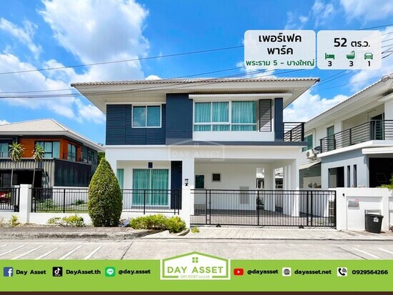ขายบ้านเดี่ยว 2 ชั้น หมู่บ้าน : เพอร์เฟค พาร์ค พระราม 5 บางใหญ่ ซอยวัดพระนอน เนื้อที่ 52 ตร.ว. ขายเพียง 4,890,000 ล้านบาท