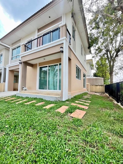 LungOm Market 1.8km. MRT TalatBangYai 8.8km. 2-storey corner house on main road 38sq.wa. 160sq.m. WatMaiPhudungKhet Sch 850m.3bed 2bath good location convenient transportation Thonburi Hospital 2 4.1km.19,999 B-M selling for 3.59 million baht