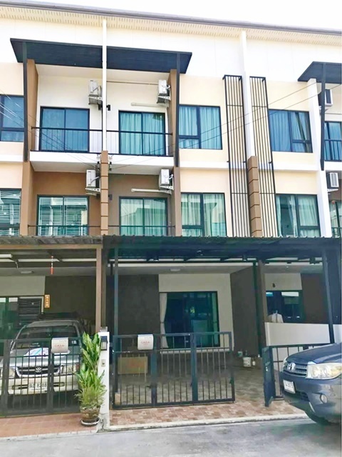 Big C Samut Prakan 800 m. BTS Srinakarin 600m. Phraeksa Townhouse for rent 3-storey 22sq.wa. 242sq.m. with furniture 2a/c Inter Education International School 1.1 km. suitable for home office residence 3 bed 4 bath 15,999 B-M shopping area