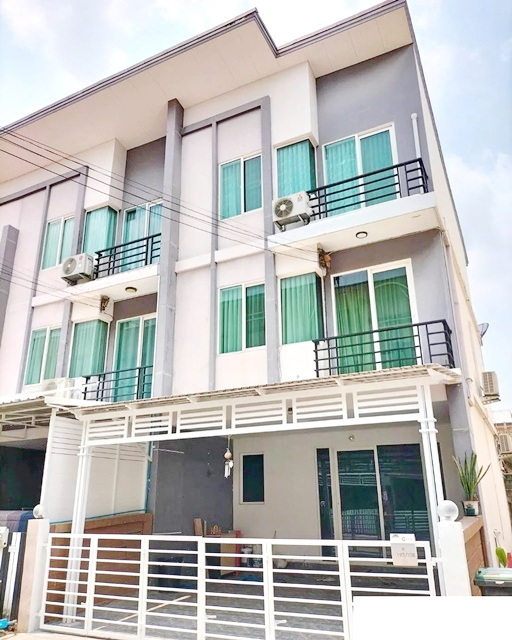 KhwanRiam Floating Market 1.5 km. 5bed MRT Ratpatthana 900 m. 3-storey townhouse corner unit 22 sq.wa.232 sq.m. quiet Ramkhamhaeng 154-164 5bath Heatfield International School 2.8 km. with furniture 24,998B-M shopping area community area