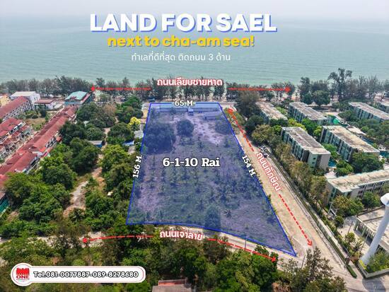 ที่ดินทำเลทอง ที่ดีที่สุด ติดทะเลชะอำแปลงเดียวเท่านั้น ขนาด 6-1-10 ไร่ พร้อมห้องพัก