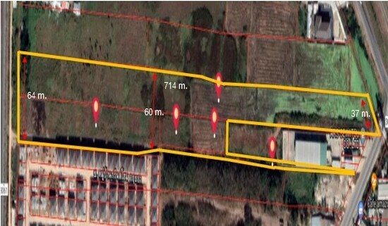 ความกว้างหน้าแปลง ด้านติดถนน ชลประทาน ประมาณ 64 เมตร
