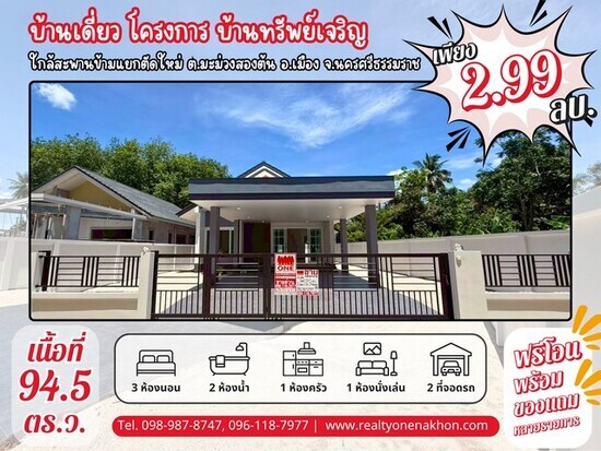 บ้านเดี่ยว โครงการบ้านทรัพย์เจริญ ใกล้สะพานข้ามแยกตัดใหม่ ตำบล มะม่วงสองต้น อำเภอ เมือง จังหวัด นครศรีธรรมราช