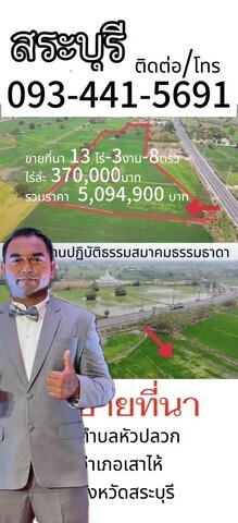 ขายที่ดินราคาถูก! วิวสวย ทำเลดี ตำบลหัวปลวก อำเภอเสาไห้ จังหวัดสระบุรี ที่ดินกือบ14ไร่ติดต่อ0934415691