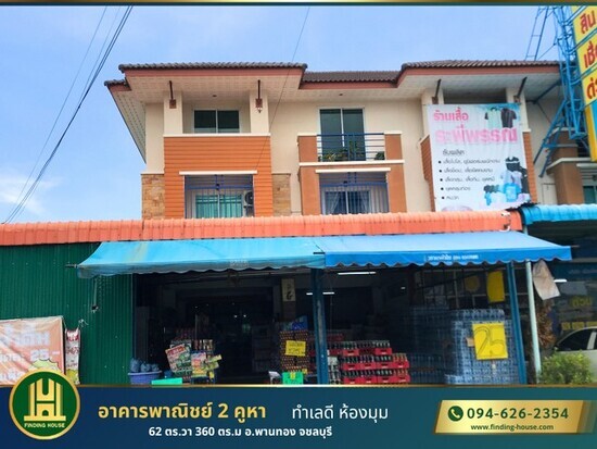 ขายอาคารพาณิชย์ 2 คูหา 3ชั้น พร้อมกิจการ 62 ตารางวา หลังมุม ทำเลดี อ.พานทอง จ.ชลบุรี