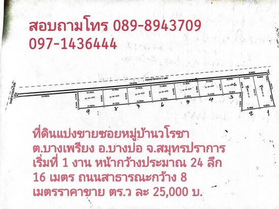 -ที่ดินแบ่งขายซอยหมู่บ้านวโรชา ตำบลบางเพรียง อำเภอบางบ่อ จังหวัดสมุทรปราการ